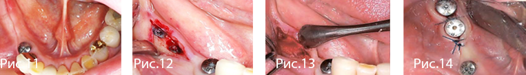 Рис. 11—14. Второе хирургическое вмешательство через 12 недель после имплантации.