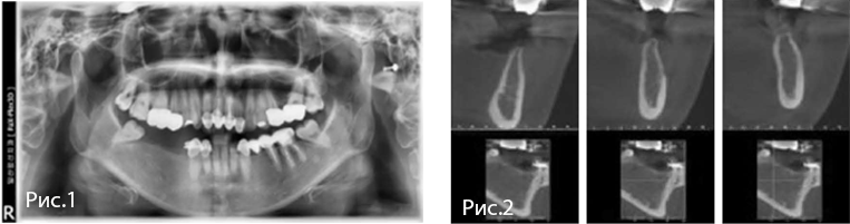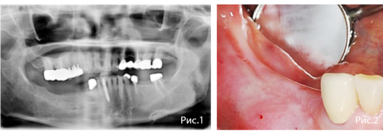 Стоматологический анамнез: протезирование на нижней челюсти за 8 лет до обращения.